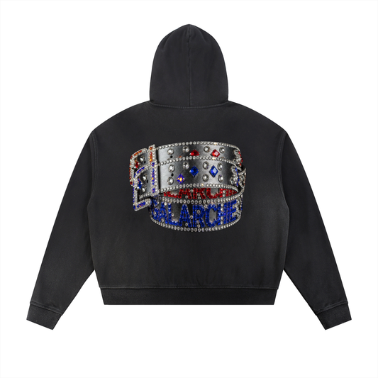 Galarche Belt Raw Edge Fleece Zip Hoodie